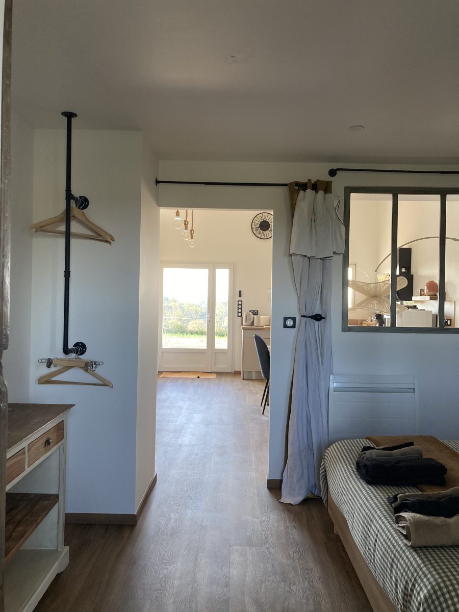Le gîte de plain-pied, se compose d'une pièce à vivre, d'une chambre et d'une salle de bain/WC.