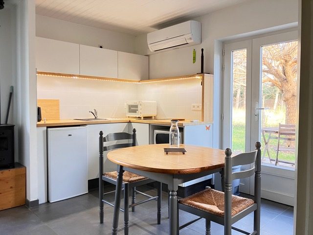 Notre gîte est situé dans un endroit très calme loin de toute agitation, tout cela pour un tarif de location raisonnable. Mitoyen à un garage privé, en rez de chaussée, 1 chambre (1 lit double), salle de séjour coin cuisine, salle d'eau, terrain clos, meubles de jardin. Piste cyclable Vielle - Hossegor. Gîte dans le bourg. Activité industrielle à moins de 5 km : usine. Terrain de 1300 m2 commun avec les propriétaire. Marché à Léon et à St Girons. Location de vélos à St-Girons plage ou Léon. Centres équestres aux abords du lac et plage.