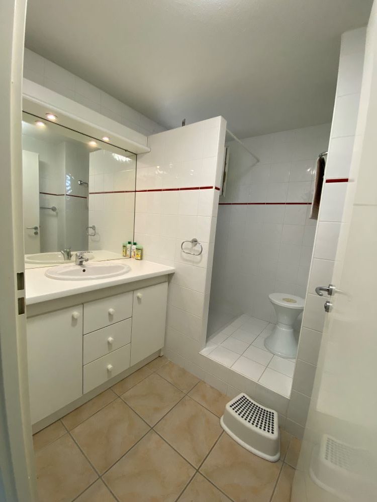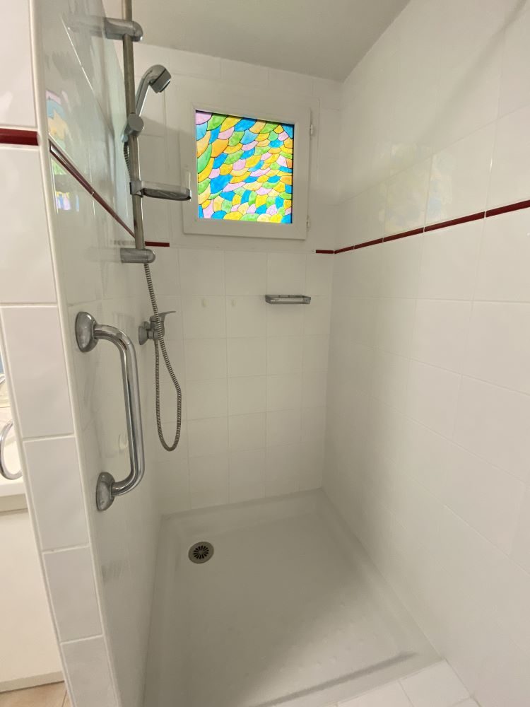 La salle de bain est équipée d'une douche; les WC sont séparés.