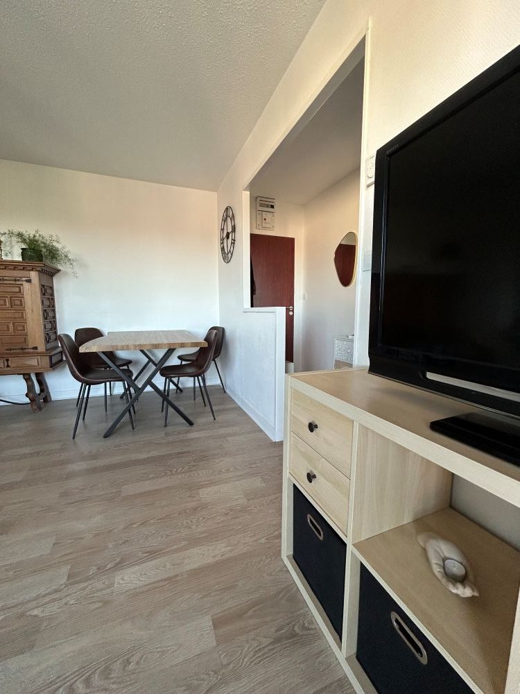 Situé dans une résidence au 5ème étage avec ascenseur, lumineux et soigneusement aménagé, il dispose d’un espace de vie agréable, d’une cuisine équipée avec lave-vaisselle, de deux chambres confortables : l'une avec 1 lit en 160 et la seconde avec 1 lit en 140; Rangements pratiques pour un séjour en toute sérénité. Une salle de bain avec douche, lave-linge et sèche linge. WC indépendants.