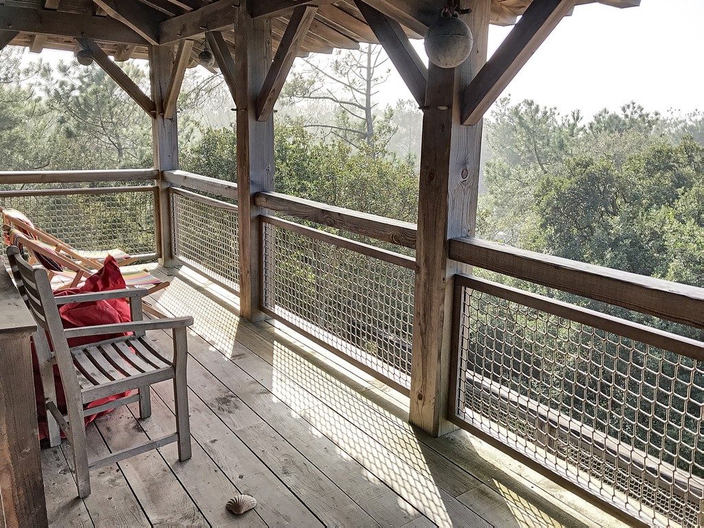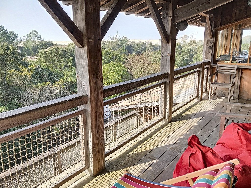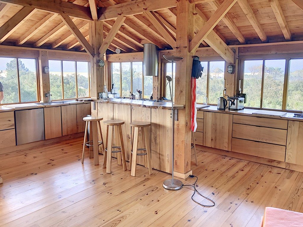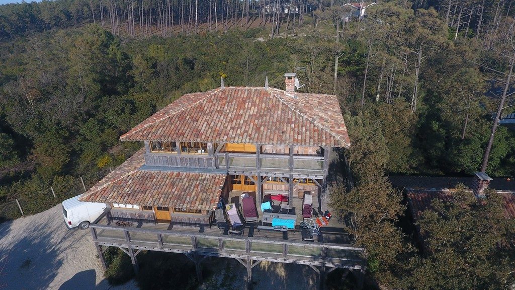 Moliets Plage maison d’architecte en bois, au cœur de la forêt, offrant une vue unique à 360°sur les environs. Pour profiter du calme, de la plage, pratiquer le golf ou le surf, faire du vélo… C’est LA maison idéale pour de belles vacances. RDC: 2 parkings couverts. 1er étage : cuisine/séjour. Chambre parentale 1 : lit 140, TV, douche, WC. Chambre parentale 2 : lit 160, douche, vasque, WC. Chambre 3 : lit 160. Chambre 4 : 2 lits superposés 90. WC séparé. Salle de bains (baignoire, vasque). Terrasses Est et Ouest : tables, bancs, chaises, transats, plancha. 2ème étage : grande pièce à vivre : cuisine équipée, bar. Draps et serviettes de toilette fournis. Une participation aux charges de 70 € par semaine sera demandée entre Mi-Octobre & Mi-Mai inclus. Le Ménage de fin de séjour en option (200€). Assurance annulation offerte avec un supplément de 1€ inclus dans les frais de dossier.
